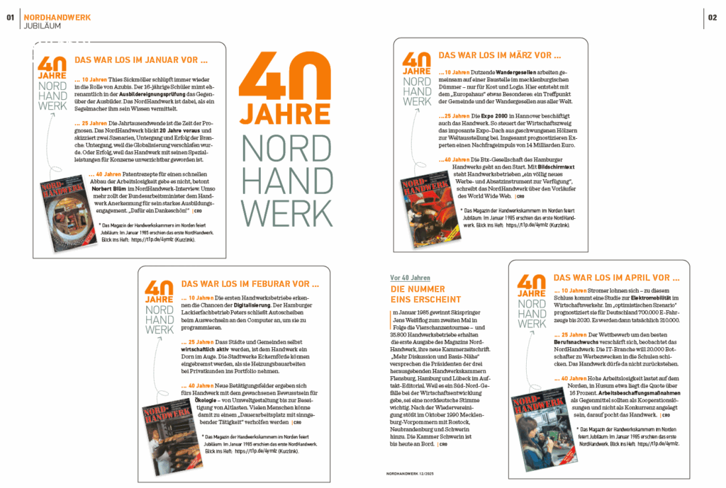 Das NordHandwerk feierte 2025 sein 40-jähriges Bestehen. 40 Jahre nah dran am Handwerk der Handwerkskammern Schwerin, Hamburg, Lübeck und Flensburg. Wir haben in unserer Serie nachgeschlagen, was in 40 Jahren geschehen ist. Ein spannender Rückblick.